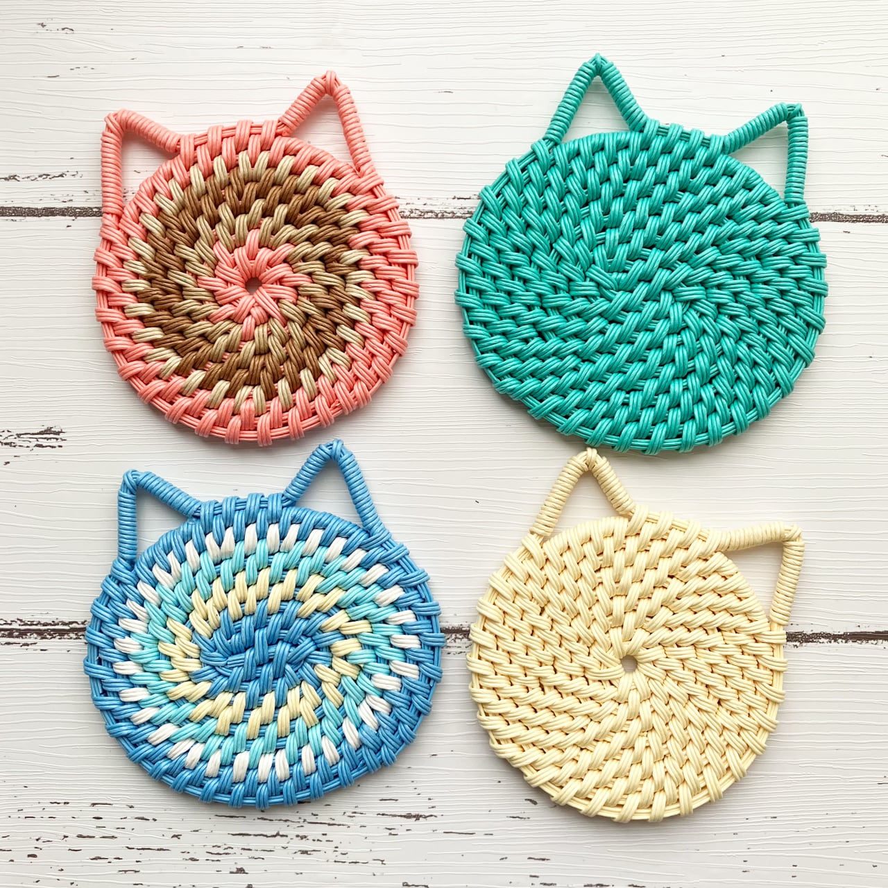 コイリング編みの猫型コースターのテキストです。